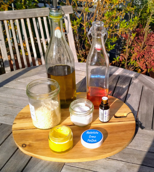 Bei Euch zu Hause werden wir gemeinsam aus Naturprodukten drei Hautcremes herstellen, die ihr dann mit nach Hause nehmen könnt.